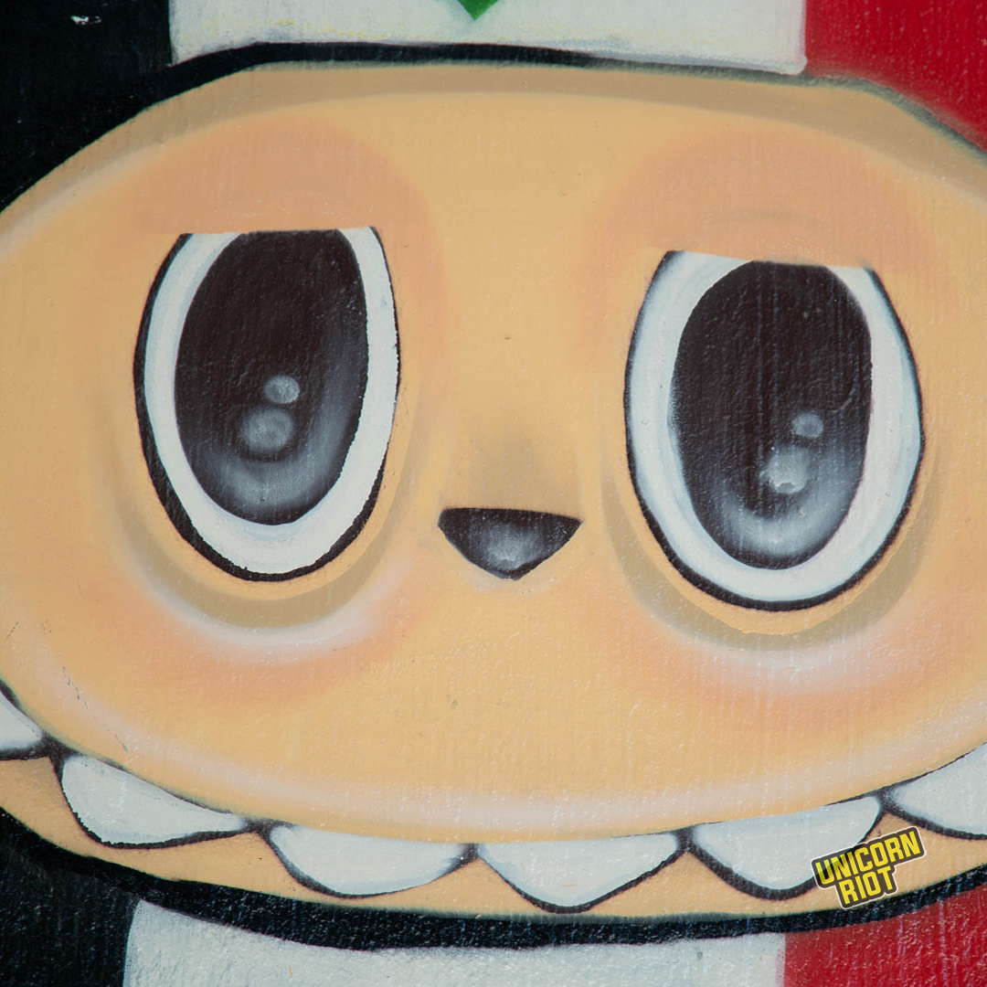 The mural titled “Majority World” serves as a cultural critique of the Labubu doll phenomenon. Labubus are a line of plush dolls owned by the Chinese based toy company Pop Mart.