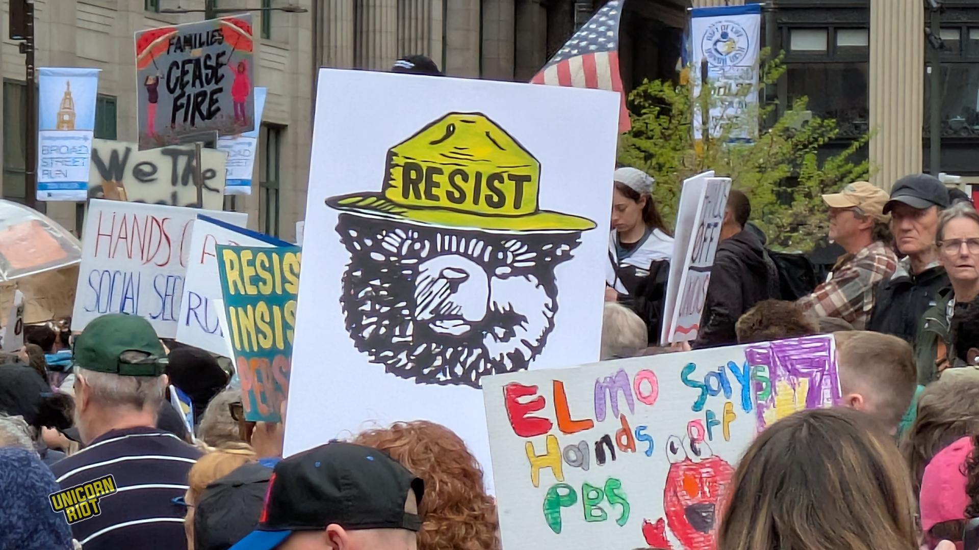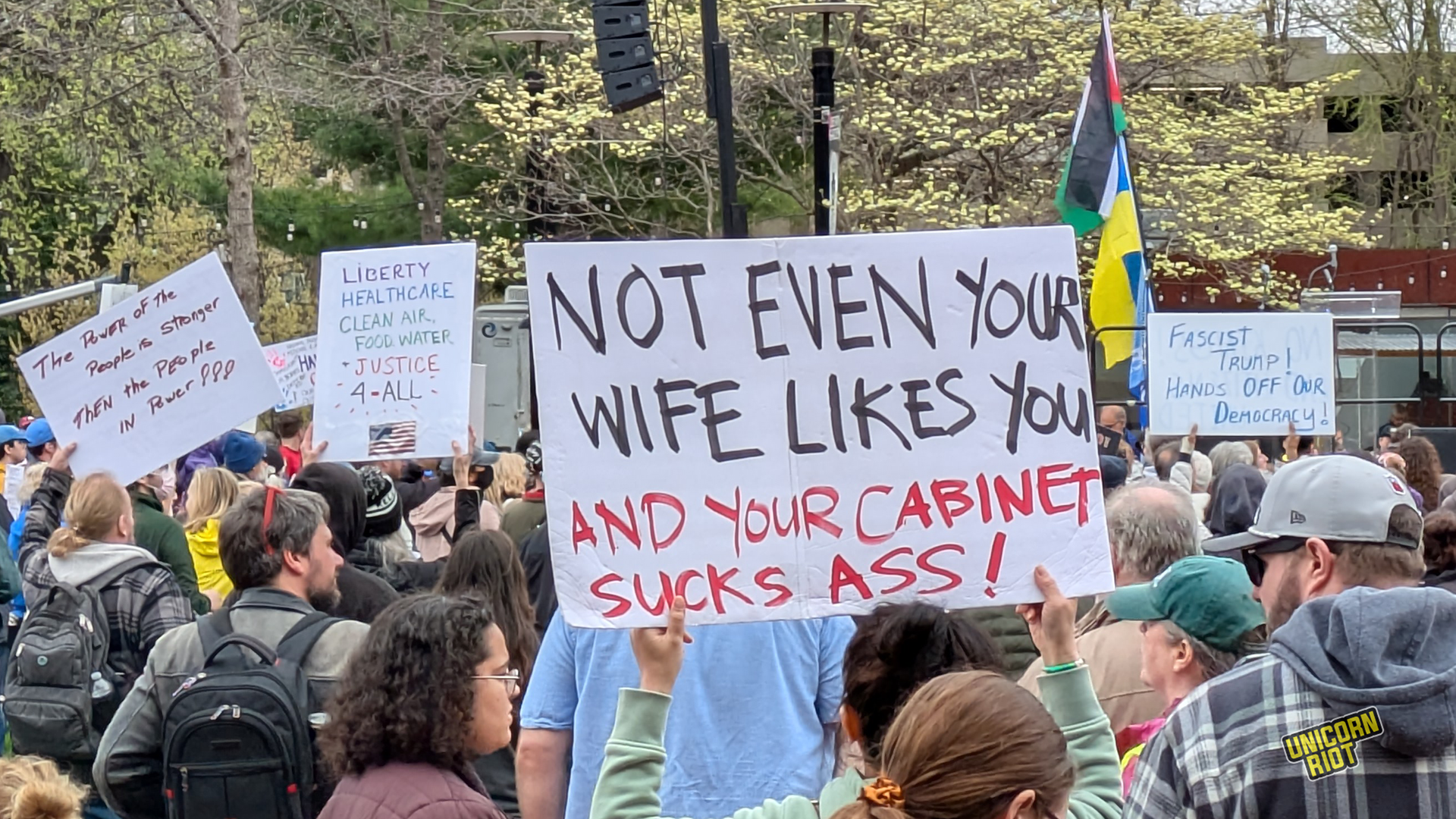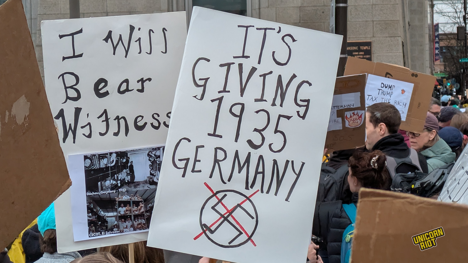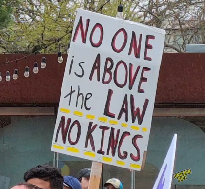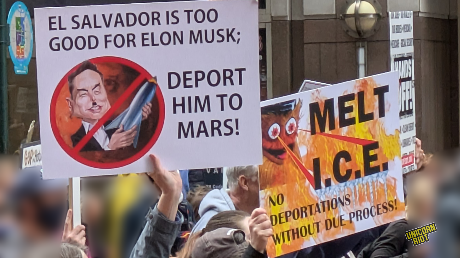 One writer noticed that American newspapers didn’t give as much front-page coverage to the protests as overseas publications. While there has been some online debate about how to process this kind of political activity in relation to the American left as a whole, on the ground in Oakland for example, leftist organizers treated the event as a “recruitment opportunity.” Likewise on the lawn in Philadelphia Unicorn Riot saw tabling and literature distribution by one or two op communist groups without any problems or friction with rally organizers, at least within our sight.