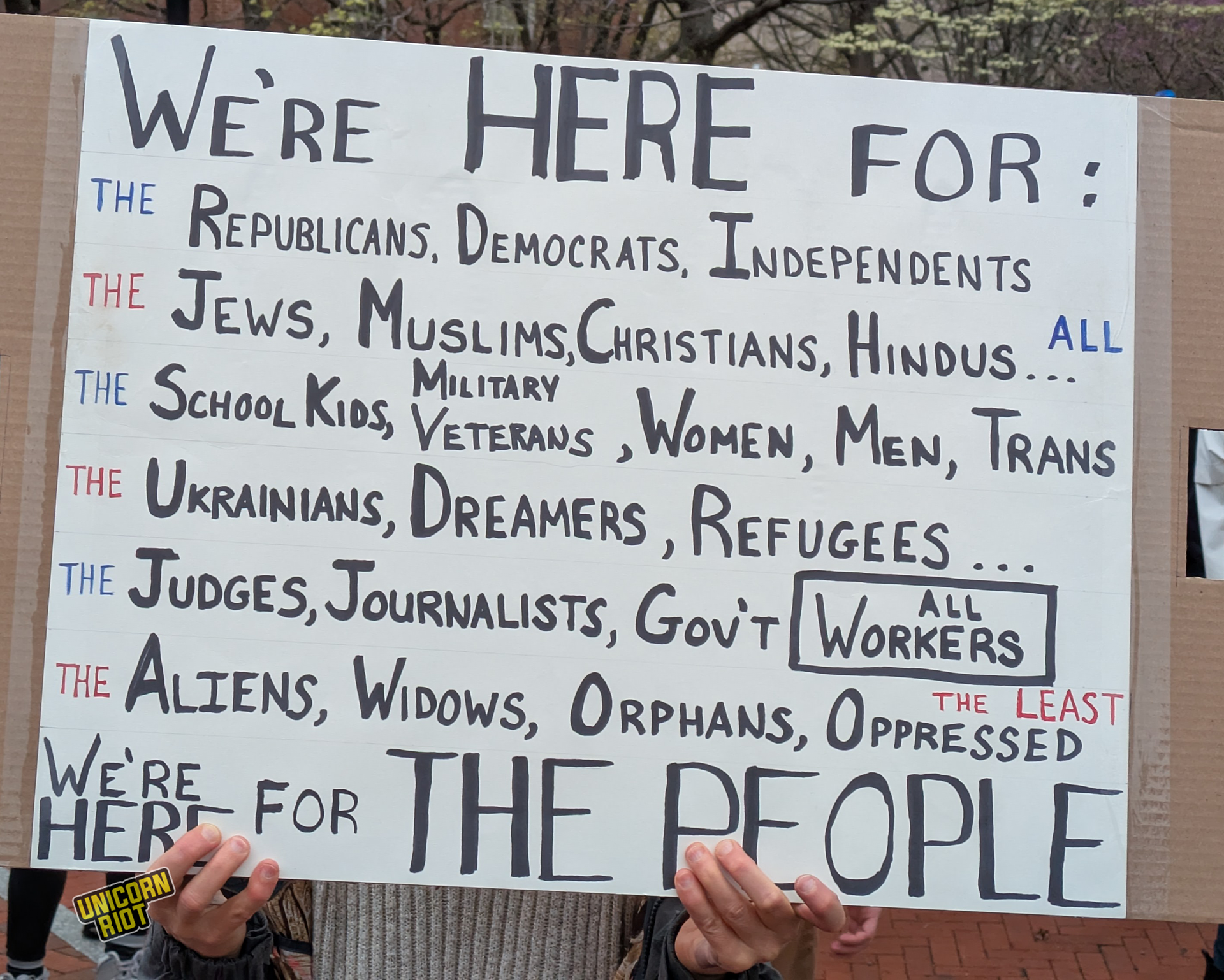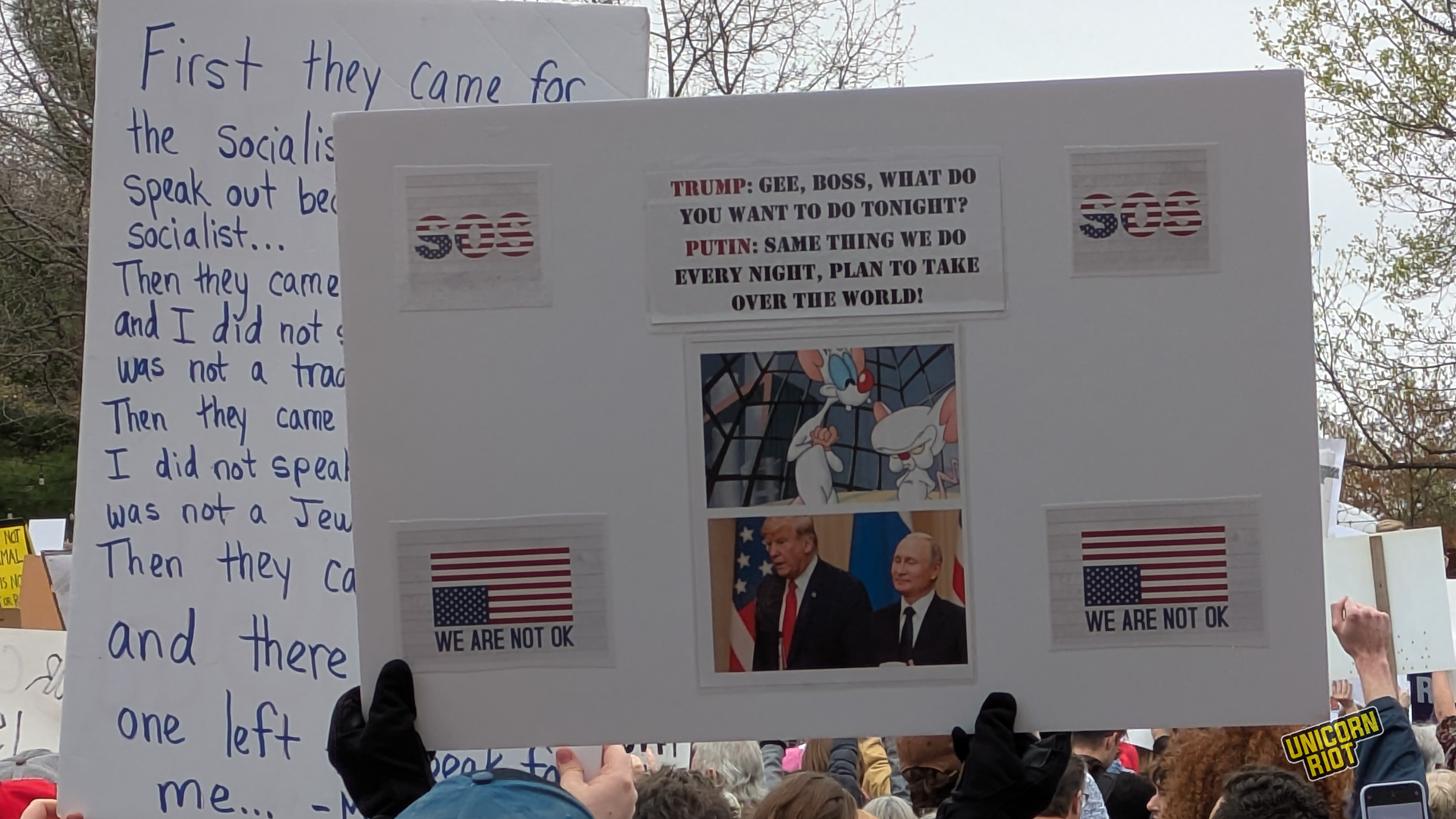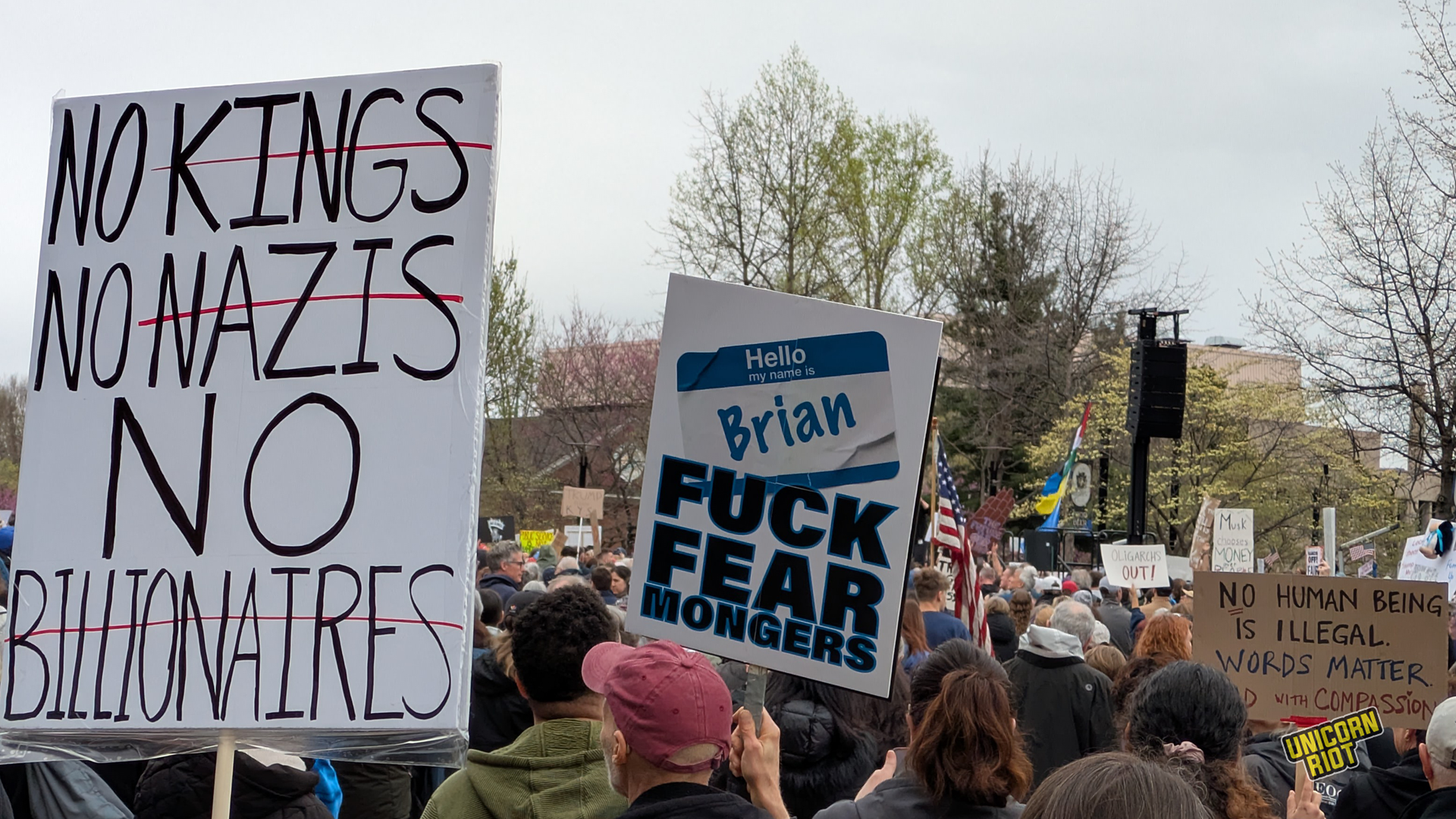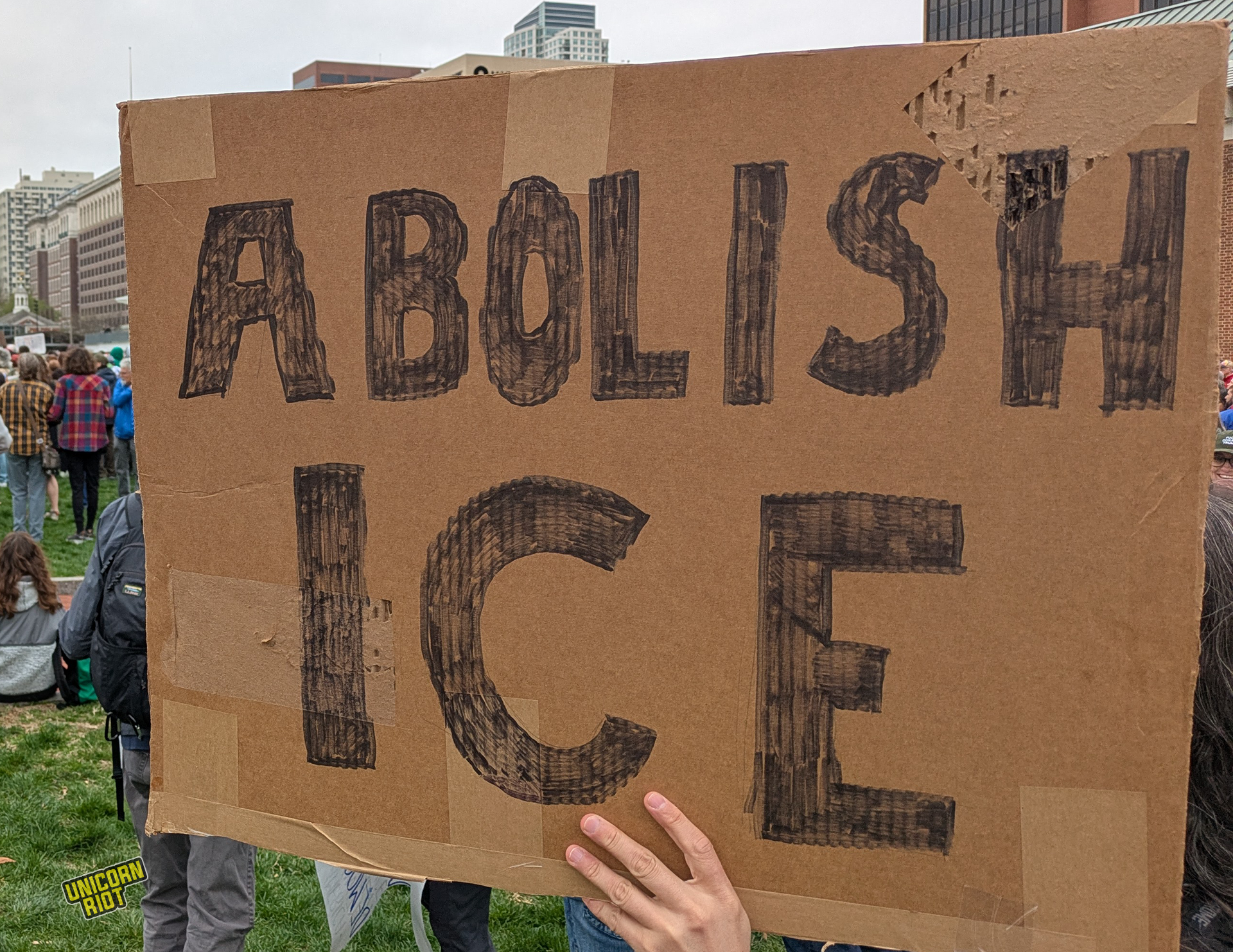 One writer noticed that American newspapers didn’t give as much front-page coverage to the protests as overseas publications. While there has been some online debate about how to process this kind of political activity in relation to the American left as a whole, on the ground in Oakland for example, leftist organizers treated the event as a “recruitment opportunity.” Likewise on the lawn in Philadelphia Unicorn Riot saw tabling and literature distribution by one or two op communist groups without any problems or friction with rally organizers, at least within our sight.