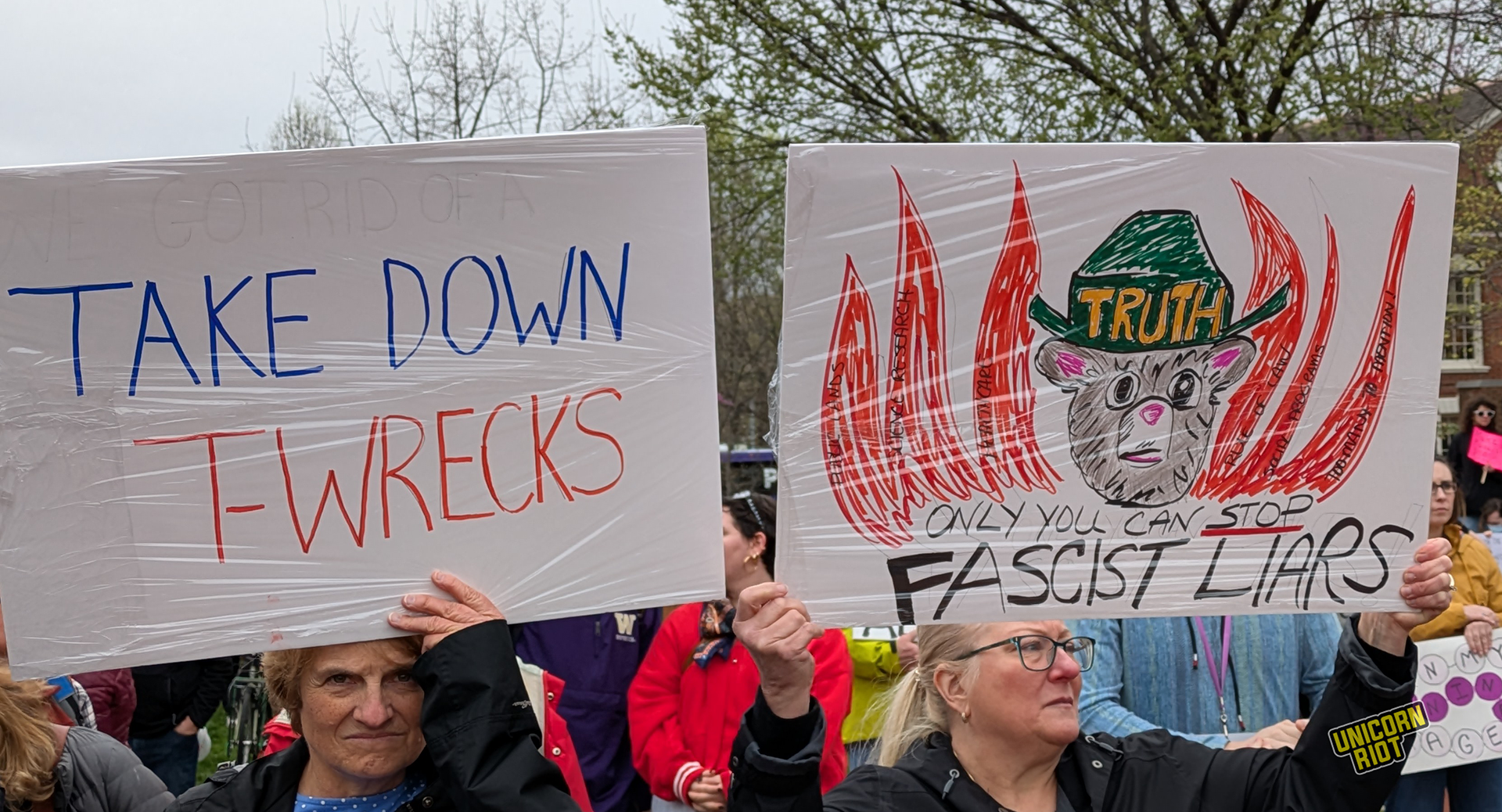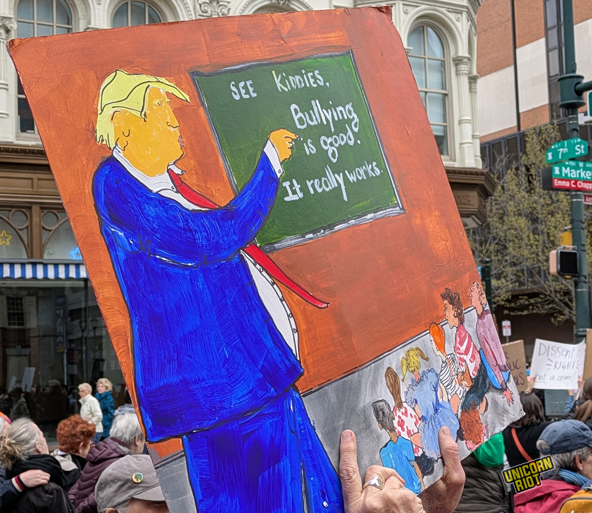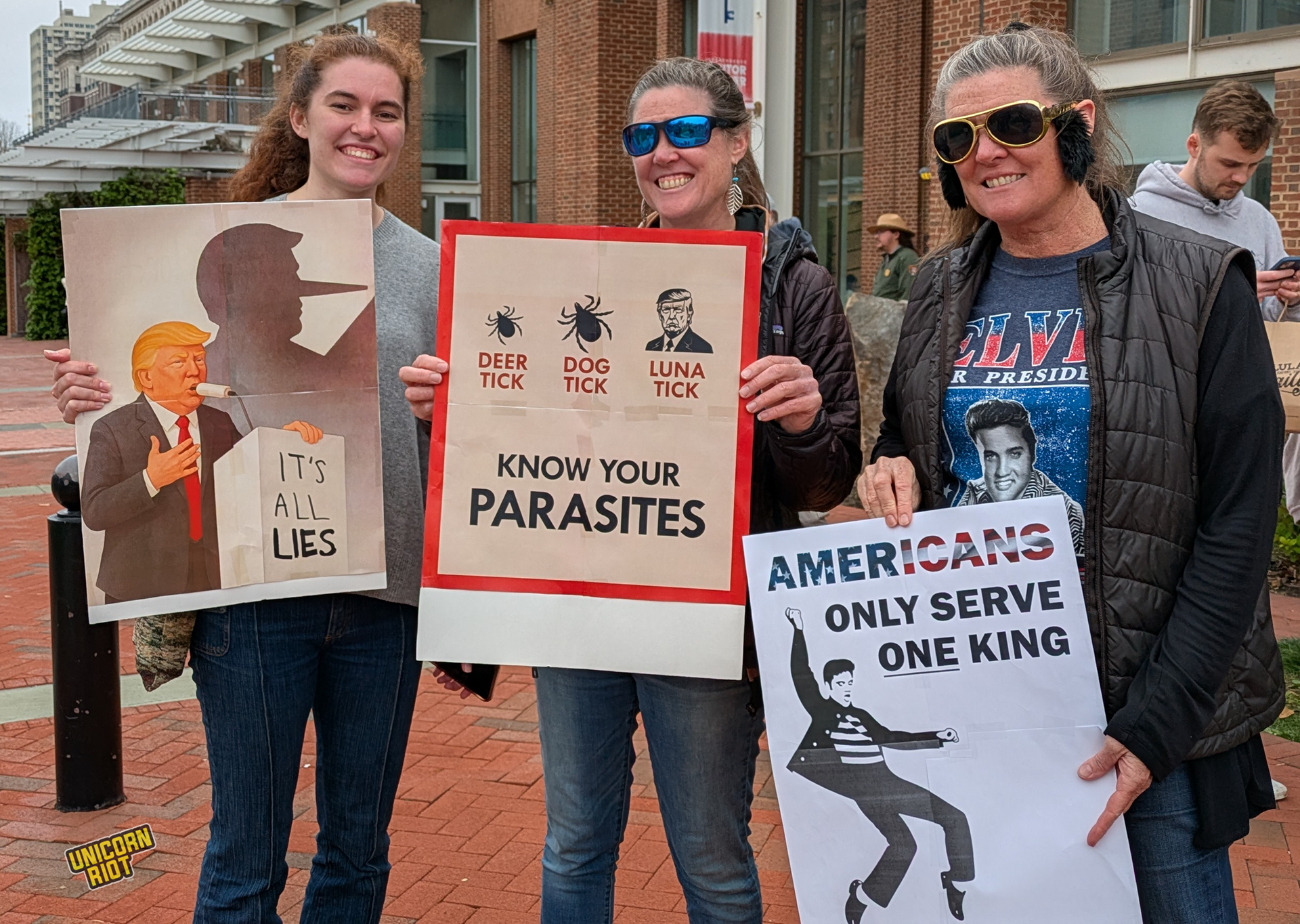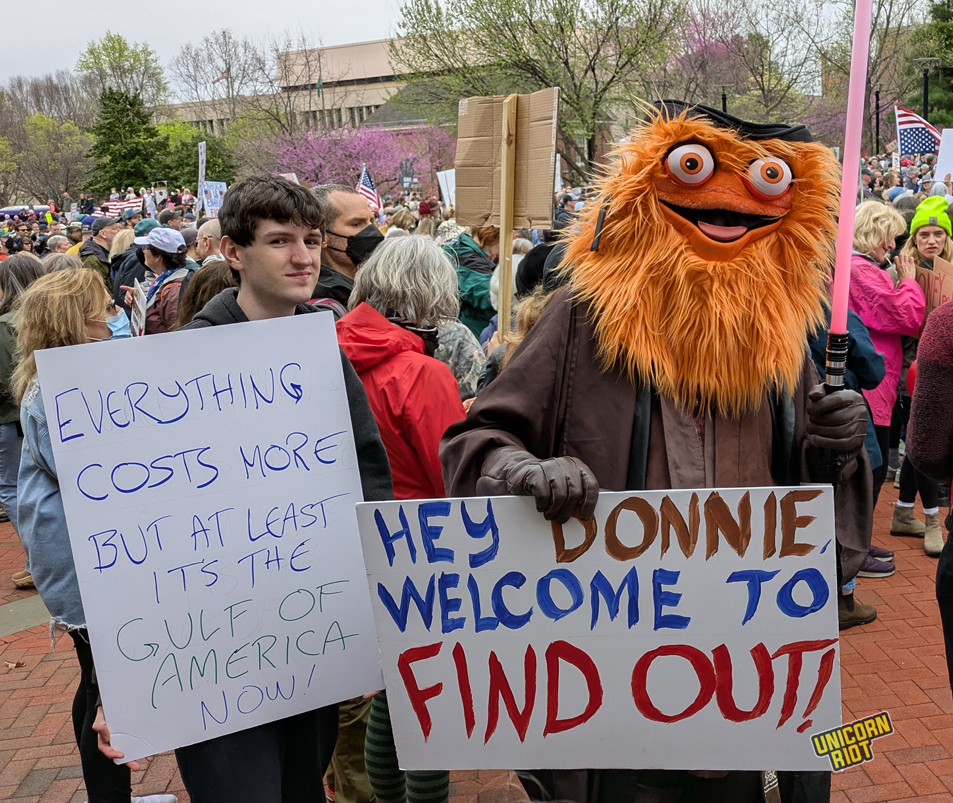 One writer noticed that American newspapers didn’t give as much front-page coverage to the protests as overseas publications. While there has been some online debate about how to process this kind of political activity in relation to the American left as a whole, on the ground in Oakland for example, leftist organizers treated the event as a “recruitment opportunity.” Likewise on the lawn in Philadelphia Unicorn Riot saw tabling and literature distribution by one or two op communist groups without any problems or friction with rally organizers, at least within our sight.