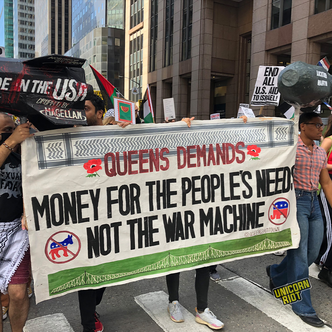 “We live in a country that’s the wealthiest one in the world, the wealthiest country that’s ever existed and yet a lot of people are suffering and that’s because hundreds of billions of dollars are funneled to weapons manufacturers and private security firms rather than investing in our communities. So we say divest from these industries in death and invest in life, so invest in healthcare, housing, education, infrastructure.” said Keppen.