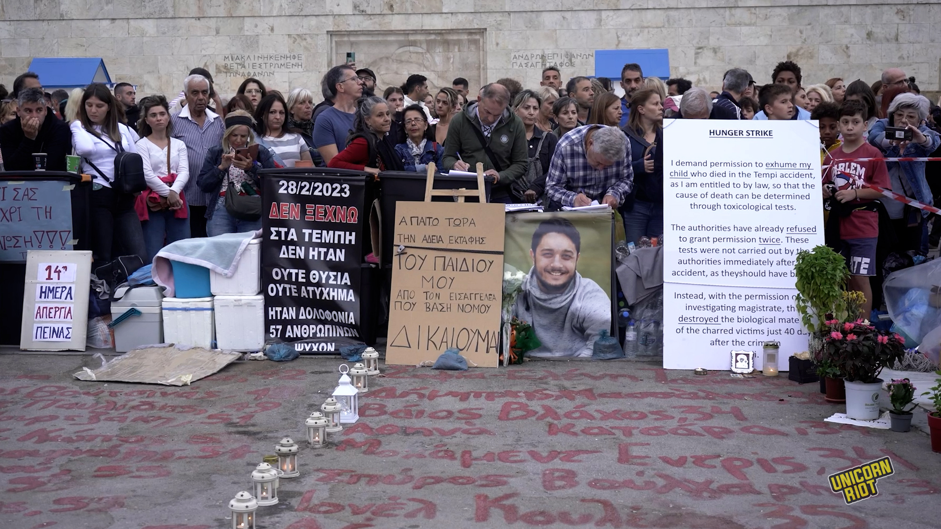 For 23 days, he maintained a presence outside parliament near the Monument of the Unknown Soldier, where supporters gathered at a spot where the victimsâ names had been written on the ground in red paint and held vigils.