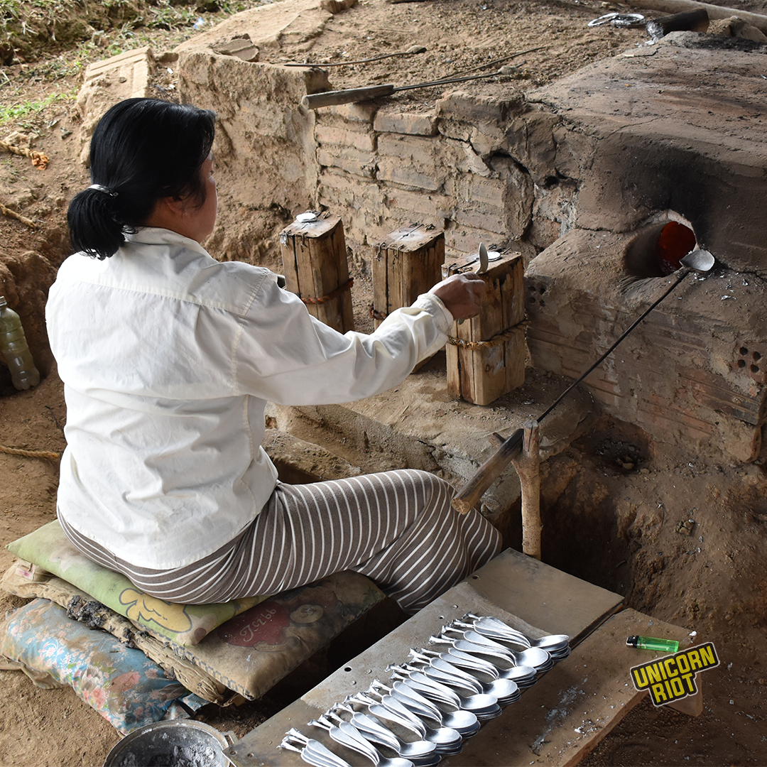 People in Laos have found creative ways to make a living out of the ashes of the war. One small village has built an entire micro industry over the years out of the war remnants. Villagers melt the aluminum of UXO down and forge it into spoons, chopsticks, keychains, even little elephants. Vendors at markets across Laos sell the items. It’s hard to find a restaurant in Phonsavan that doesn’t use spoons from the village.