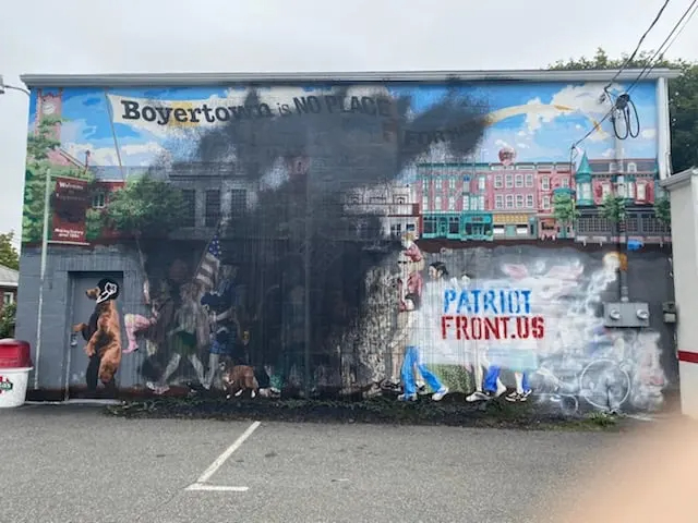 Pennsylvania: In October, Patriot Front members covered over a mural in Boyertown, PA reading ‘Boyertown is No Place For Hate’. They took ‘before’ and ‘after’ photos and videoed themselves spraying paint to cover several of the people of color depicted in the mural.