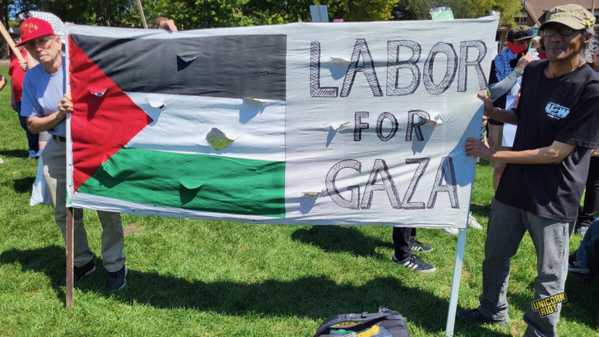 Monday’s demonstrations began with a rally at Chicago’s Union Park, where thousands heard from speakers denouncing Israel’s mass killings in Gaza before taking the streets to march towards the DNC venue.