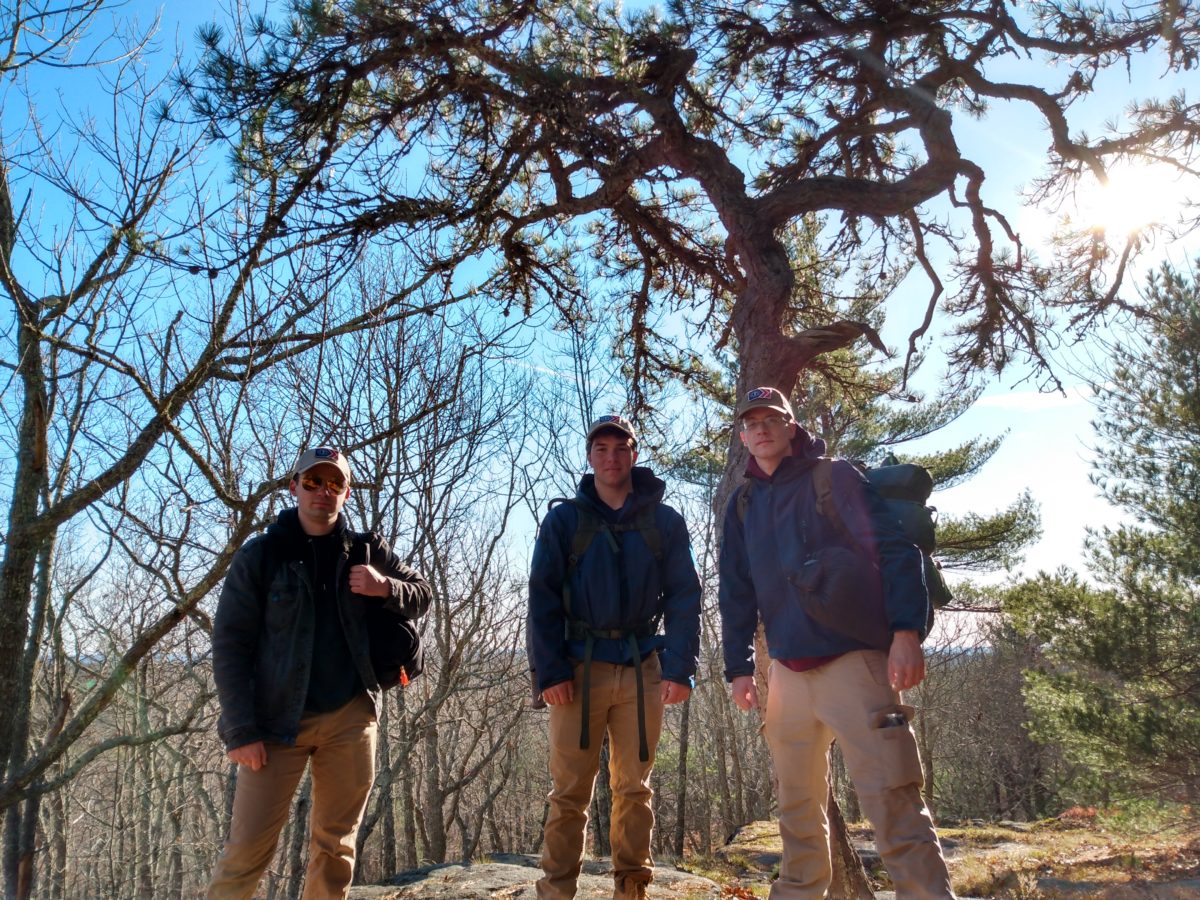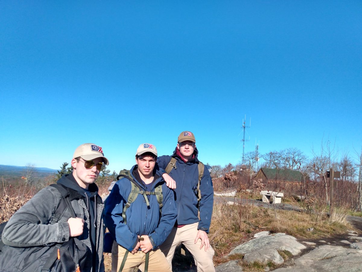Summary: 17 photos and 4 videos dated November 7, 2021 show 4 masked Patriot Front members hiking through a park in West Virginia and posting with flags.