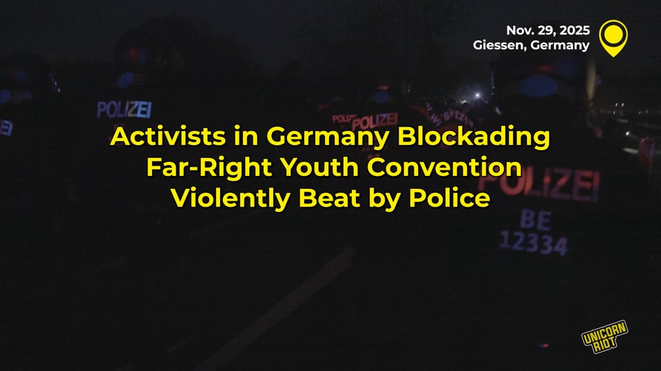 Over 50,000 people attempted to block the founding convention for the new youth organization of the far-right AfD party on Nov. 29 in Gießen, Germany. Wide-ranging actions, including 19 blockades around the small city, prevented a majority of participants from attending. The AfD had dismantled its previous youth party after the German Intelligence Service declared it a right-wing extremist group. Police violently beat blockaders. Reports note a large drop in conference attendance with a few hundred participants of the expected thousands.