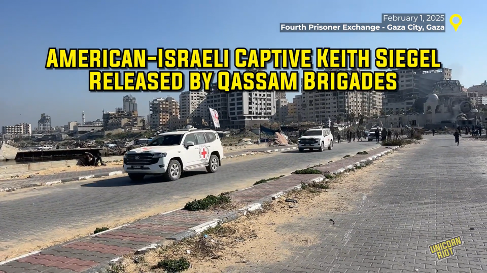 On Saturday, February 1, Unicorn Riot documented the moments that American-Israeli captive Keith Siegel, 65, was handed over to the International Committee of the Red Cross in Gaza City. Siegel was taken captive and brought into Gaza on October 7, 2023, along with his wife, Aviva, who was released in an exchange in November 2023.