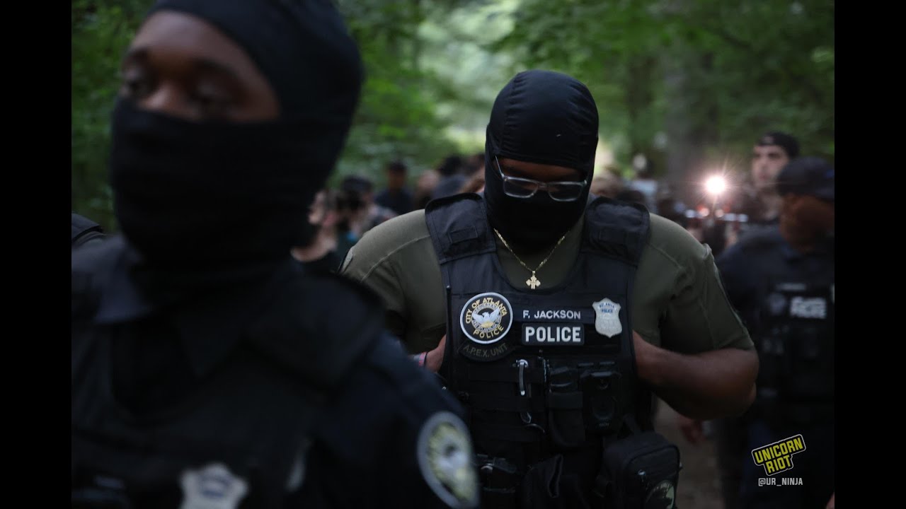 Just as the 8:30 p.m. vigil for Manuel ‘Tortuguita’ Terán was set to begin in Brownwood Park, several dozen Atlanta Police officers in tactical vests (some masked) swept through under the pretext of telling #StopCopCity protesters “the park closes at 11.”