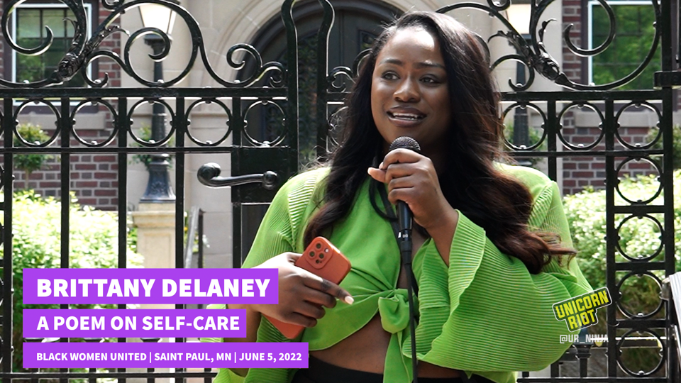 An all-Black-women lineup of speakers and performers gathered outside the Minnesota Governor’s Residence to remember Breonna Taylor on what would’ve been her 29th birthday had she not been killed by Louisville police over two years ago. Of the several speakers, Brittany Delaney, Poet, Executive Director of Black Table Arts, was one of three who performed spoken word pieces. She performed a poem she wrote on self care. “I wanna write a poem to my body that doesn’t start with an apology…” Watch the other two here along with a video from the whole event: unicornriot.ninja/2022/black-women-united/
