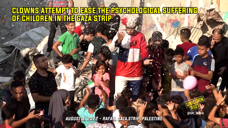 Clowns Attempt to Bring Happiness to Children in Gaza September 4, 2022 🦄 Global Single story posts page footer widgets mobileYour Source For Independent Media – No Ads or Paywalls – Viewer Supported Main video URL: Vimeo. See more videos & media like this: Gaza, Gaza Strip, Video Gallery • For all videos check out the new Media Library.
