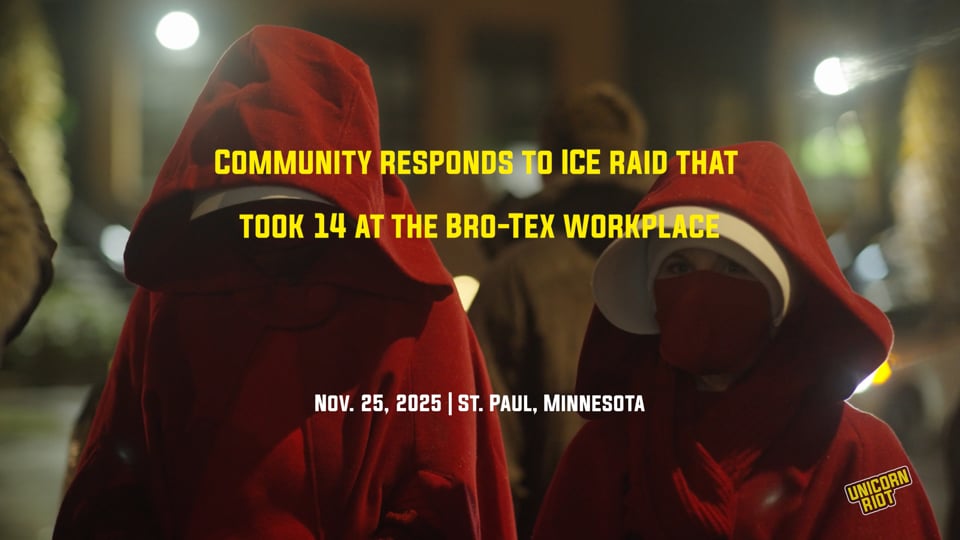 On Nov. 18, 2025, dozens of community members were alerted to a surprise raid at a warehouse in St. Paul. Within minutes of federal agents with ICE, the DEA and FBI arriving at the workplace, a rapid response network mobilized to confront the agents carrying out an immigration raid at the Bro-Tex distribution center. A week later, a rally was held denouncing the raid. More on the raid in link below.