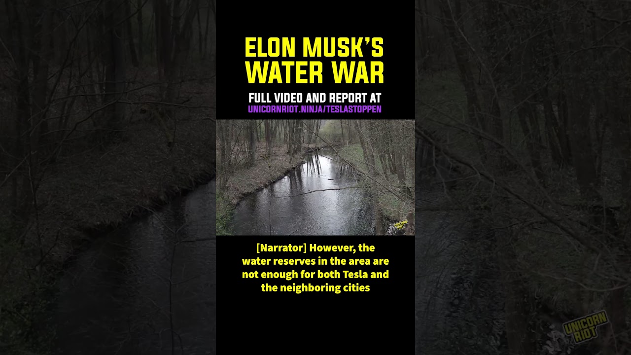 Opening Segment to our 7 min video Elon Musk’s Water War, published in April 2024. || “Welcome to the Utopian Gigafactory,” reads a banner hung across a path in a Brandenburg Forest outside Berlin, Germany. At the end of the path, Tesla’s very real Gigafactory is visible behind the trees. The banner has been hung by activists of the “Teslastoppen” (Stop Tesla) initiative, who have occupied part of the forest since late February, aiming to prevent Tesla from expanding its only European Gigafactory.