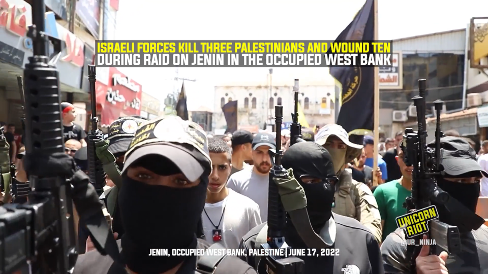 A large Israeli military operation of at least 30 vehicles and special forces raided Jenin Refugee Camp in the Occupied West Bank, killing three Palestinians and wounding 10 in the early morning of Friday, June 17, 2022. At least 60 Palestinians have been killed by Israeli forces in 2022, with many happening during raids and nearly half in Jenin.