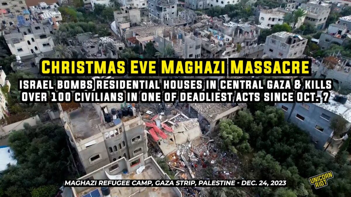 With over 100 dead and counting, the Christmas Eve massacre at the Maghazi refugee camp has become one of the deadliest Israeli bombings on Gaza since October 7. Gaza Ministry of Health spokesman Ashraf Al-Qudra said that the bombings of the camp in a crowded residential square are acts of an ongoing genocide perpetrated by Israel against Palestinians.