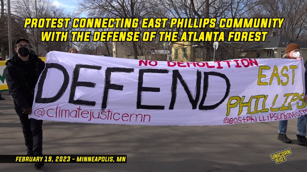 Two weeks before a planned week of action in Atlanta against ‘Cop City’ and a week before slated construction is about to begin in the demolition of the Roof Depot site in Minneapolis, a protest in East Phillips brought the struggles together.