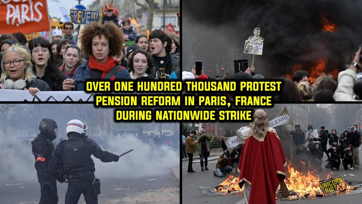 Nationwide Strike Draws 100K for Paris March Against Pension Reform April 3, 2023 🦄 Global Single story posts page footer widgets mobileYour Source For Independent Media – No Ads or Paywalls – Viewer Supported More than 100,000 people demonstrated in Paris, France during a nationwide 24-hour strike on March 28 to protest French President Emmanuel Macron’s forced pension reform plan that raises the retirement age. Main video URL: YouTube. See more videos & media like this: Video Gallery • For all videos check out the new Media Library.