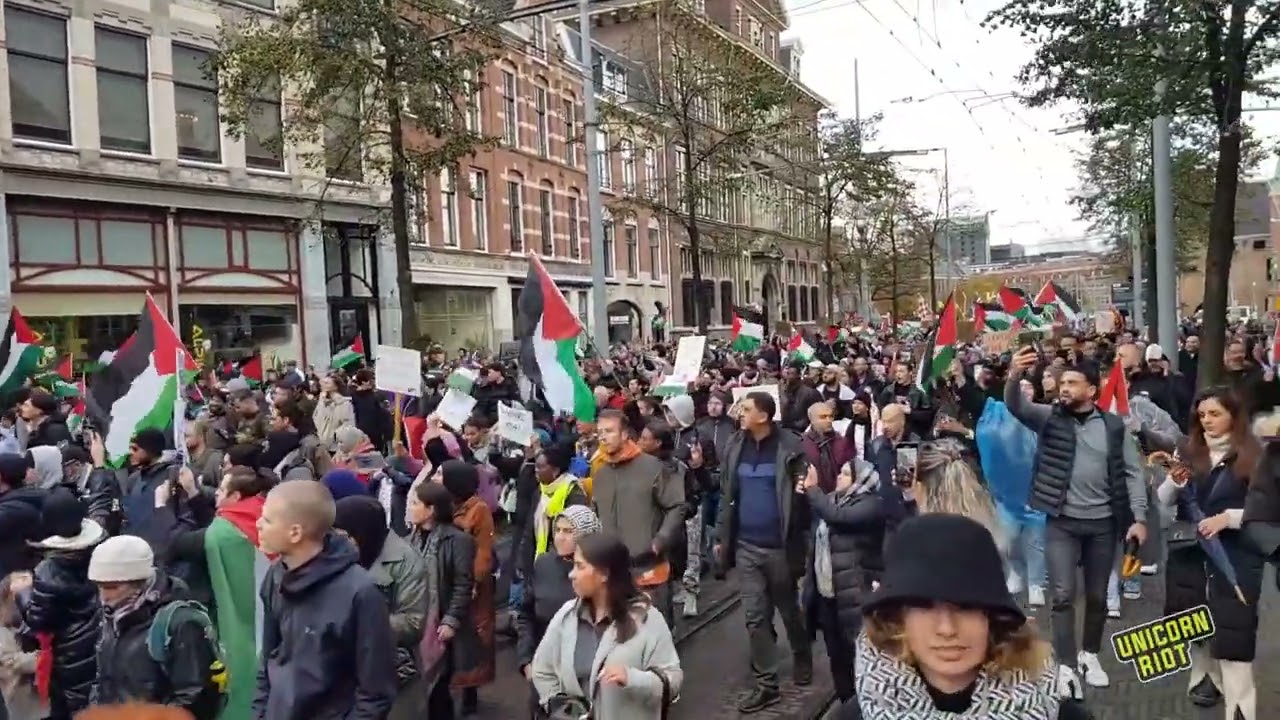 A ‘Free Palestine’ demonstration in the Netherlands today marched to The Hague to demand the International Criminal Court open a war crimes investigation targeting Israel’s Prime Minister Benjamin Netanyahu and Defense Minister Yoav Gallant.