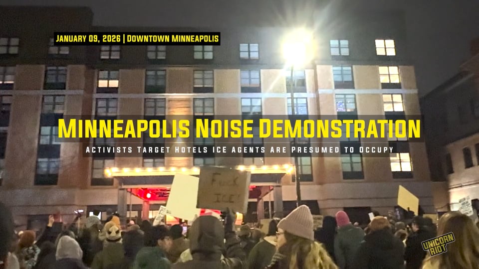 Over a thousand protesters visited two hotels in downtown Minneapolis on Friday night equipped with loud noise makers in attempts to disrupt the sleep of any ICE officers in the hotels. A large intra-agency state police response led to 30 arrests of people who refused to leave after dispersal orders were given. Full story in article below.
