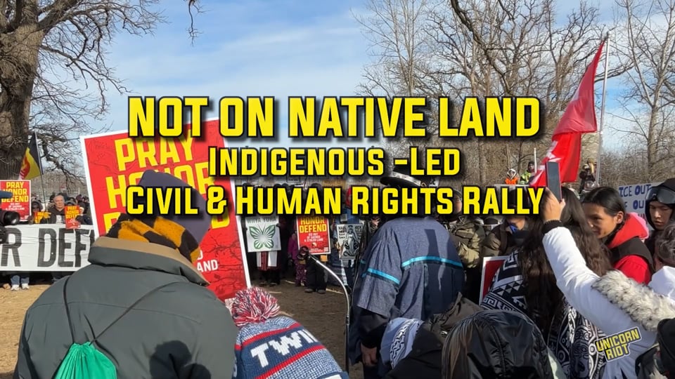 On Feb. 7, hundreds gathered outside the Whipple Federal Building near the Minneapolis-Saint Paul Intl Airport for an Indigenous-led civil and human rights rally called Not on Native Land to protest what is being done by federal agents on historically native land. Speakers invoked the history of the land, of white settlers genociding Native Americans, and the roles of Bishop Henry Whipple and Fort Snelling.