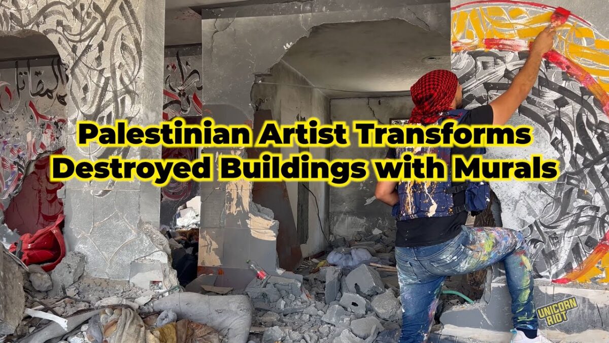Palestinian calligraphy artist, Ayman Al-Husari, transforms Gaza’s war-damaged buildings into magical artistic creations in a move aimed at boosting people’s morale and overcoming the remnants of Israeli bombing raids on the Gaza Strip. “We love life,” Al-Husari said, “we have destruction, but this is not because of us, this is a reality we live in. But we, as Palestinians, love life, love colors and art, and we want to live.”
