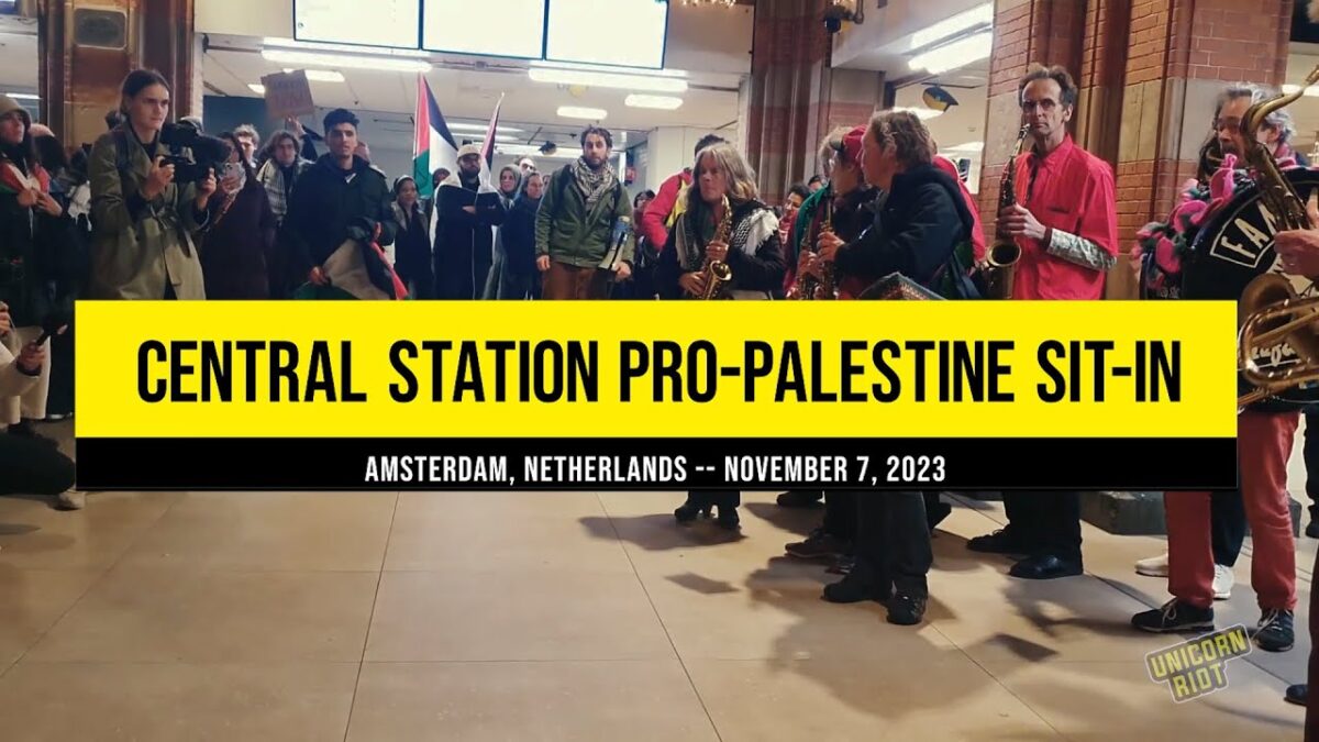Hundreds of pro-Palestinian activists gathered in the main hall of Amsterdam Central Station at rush hour on Tuesday in a sit-in protest inspired by similar sit-ins in New York City and London. Activists called for a ceasefire in the besieged Gaza Strip and denounced the role of the Netherlands and the European Union in aiding Israel’s military and giving diplomatic cover for Israeli war crimes.
