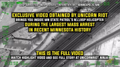 High-tech surveillance video and audio communication from a Minnesota State Patrol helicopter, obtained and first published by Unicorn Riot, reveals some of the planning and tactics behind the largest mass arrest in recent Minnesota history. On Nov. 4, 2020, a multi-agency law enforcement operation kettled and arrested at least 646 people during a post-election-day protest calling for then-President Donald Trump to not βsteal the vote.β