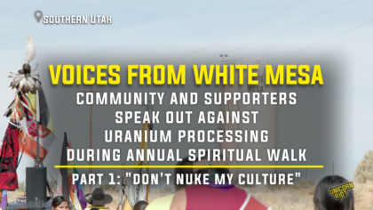This video is Part Two of our four-part series “Voices from White Mesa.” On Oct. 12, members of the Ute Mountain Ute Tribe held their annual spiritual walk opposing the White Mesa Uranium Mill in Southern Utah. The mill, which processes uranium and other substances, sits on sacred land just north of the tribeβs reservation boundary and is the only one of its kind in the U.S. Local organizers with White Mesa Concerned Community and their supporters organize the walk each year to raise awareness about the mill and demand it be shut down and cleaned up. Participants rallied before walking five miles to the mill site. Unicorn Riot heard from participants and organizers along the route. Full story and videos in link below.