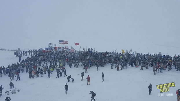 Standing Rock / Oceti Sakowin, ND – Thousands of water protectors and veterans woke up to snow falling on December 5th, the day after the pipeline easement denial. In the early morning veterans amassed themselves at Prairie Knights Casino in Standing Rock, apologized to the…