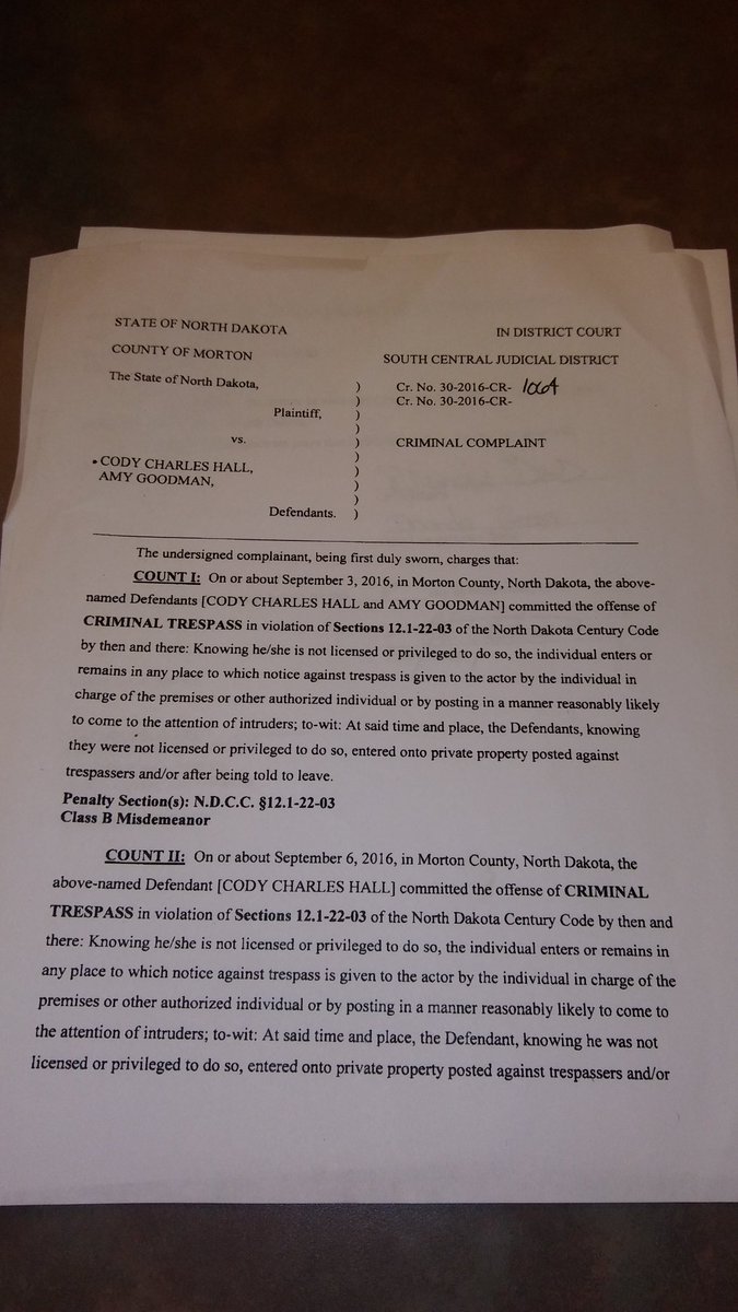 UPDATE- Thursday, September 22 – Olowan Martinez has been freed on bail after being booked in Sheridan, Nebraska, according to a statement posted to Facebook by Red Warrior Camp.